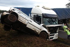 Por volta das 16h desta sexta-feira uma carreta, com placas de São José dos Pinhais (PR), bateu de frente com um Gol, placas de Lages, no Km 224 da BR-116, em Correia Pinto, região serrana de Santa Catarina. Um casal ficou ferido e foi levado ao Hospital Nossa Senhora dos Prazeres, em Lages. Segundo o motorista da carreta, que passa bem, ele perdeu o controle da direção. (PRF)