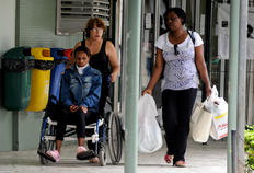 | Daiane deixa hospital Celso Ramos em uma cadeira de rodas e usando colete cervical. Ela estava internada desde o dia 27 de outubro (Foto:Felipe Carneiro / Agencia RBS) |