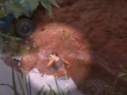 | Momento em que a jovem foi localizada pelos bombeiros dentro de um córrego, depois de três dias do acidente (Foto: Reprodução/ TV Tem) |